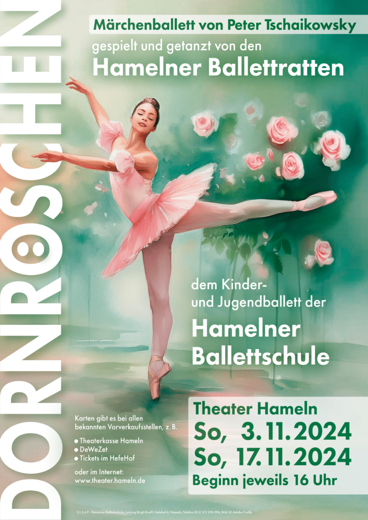 Auch in diesem Jahr entführt Sie das Kinder- und Jugendballett der Hamelner Ballettschule in die zauberhafte Welt des klassischen Balletts. Aufgeführt wird das Märchenballett „Dornröschen“ von Peter Tschaikowsky, das mit viel Hingabe und Können auf der Bühne des Theaters Hameln zum Leben erweckt wird.